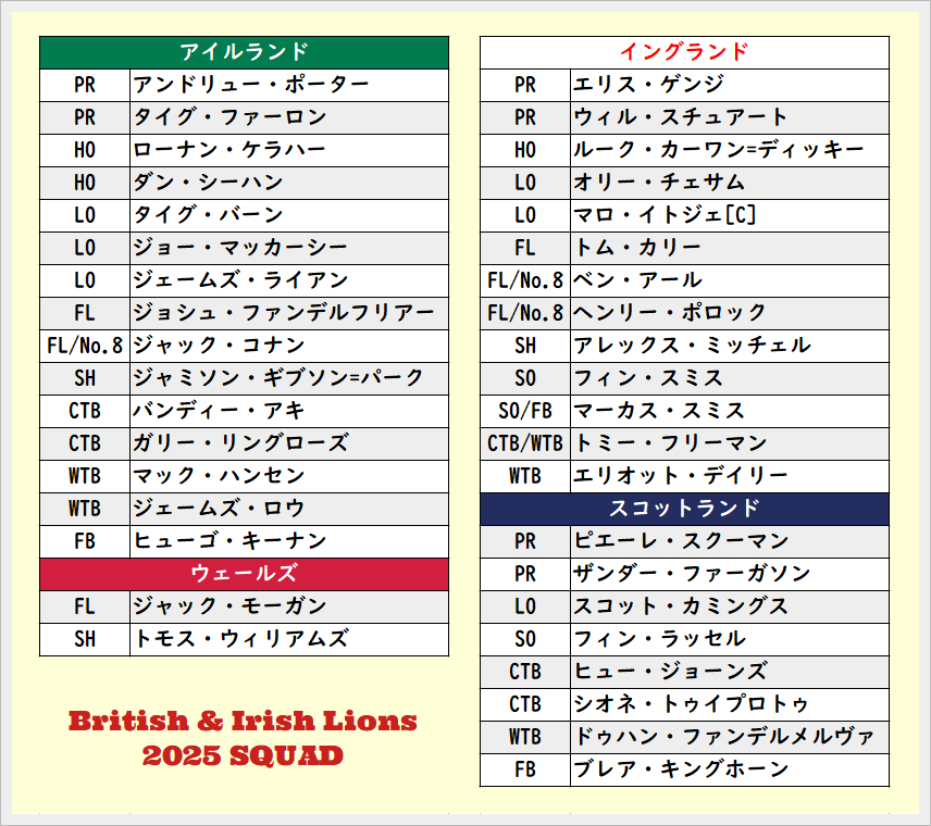 ツアーを率いるのはアンディ・ファレルHC(アイルランド)、キャプテンはマロ・イトジェ(イングランド)です。