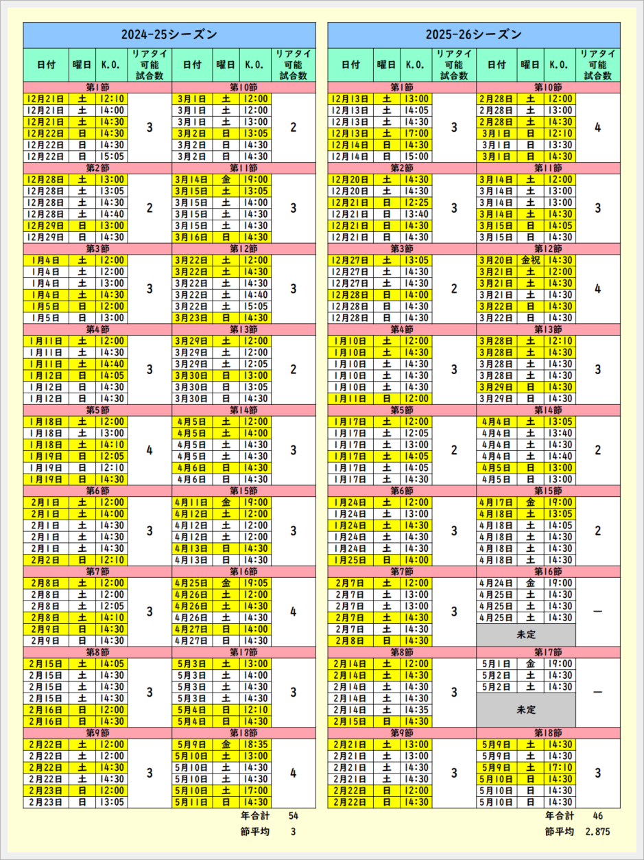 と仮定します。昨シーズンは1節平均「3試合」のリアタイが可能でしたが、今シーズンは「2.875」試合のリアタイが可能、というデータになりました。