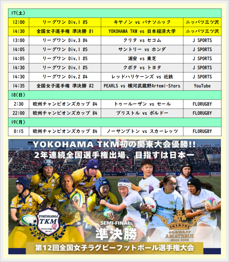 やはり大会を首位で通過したYOKOHAMA TKMが目立ちますね。TKMに限らず、沢山の選手たちが代表に呼ばれるよう祈ってます。勿論、トライ数が全てではありませんので、活躍した選手たちが沢山代表に呼ばれると良いですね。