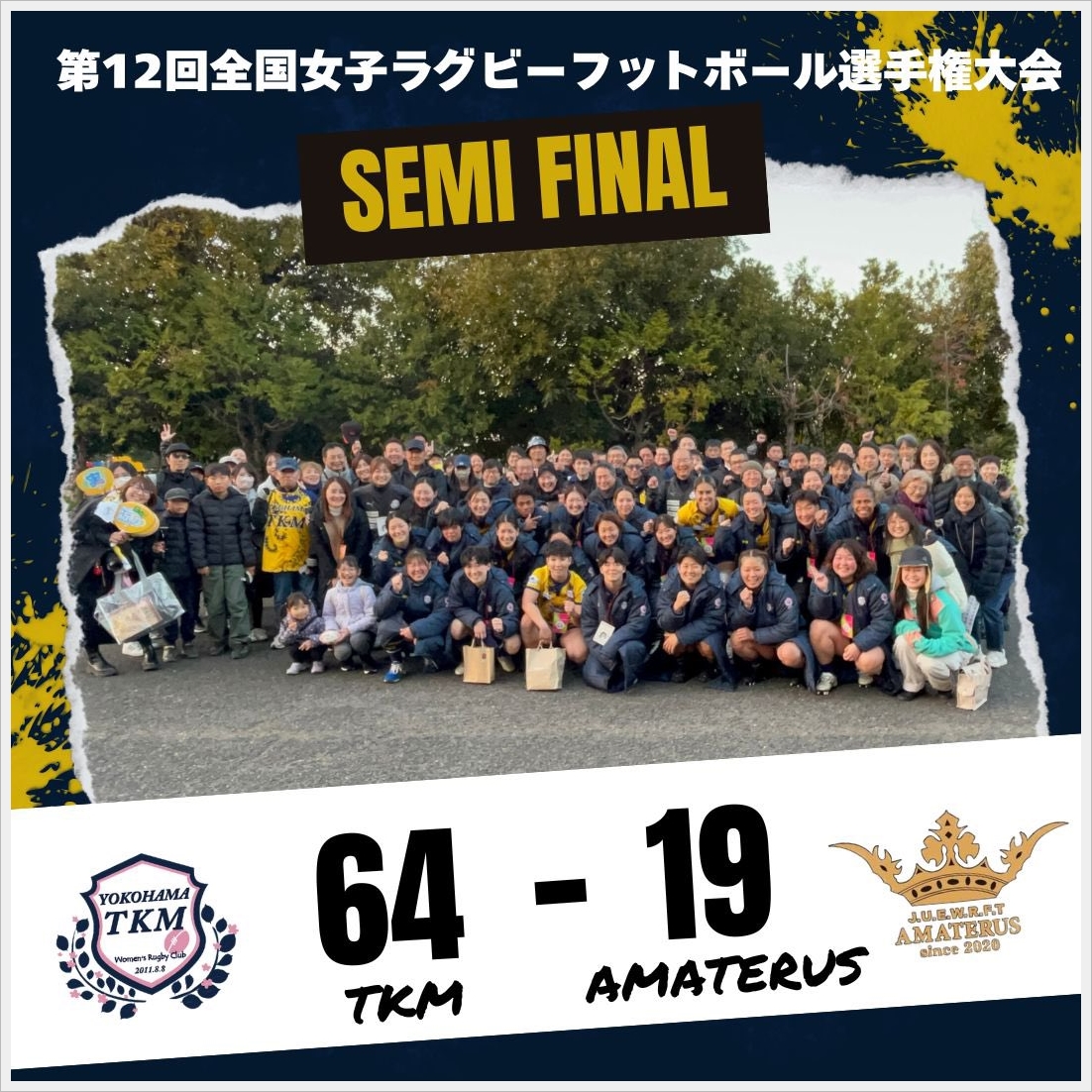 公式記録を見ると、今日の試合は4,242人の大観衆でした。普段、男子の試合しか観ない人達も沢山残ってくれたのではないでしょうか。その人達にも、女子ラグビーやYOKOHAMA TKMの魅力が伝わり、決勝にもっと沢山のお客さんが入ることを願って止みません。