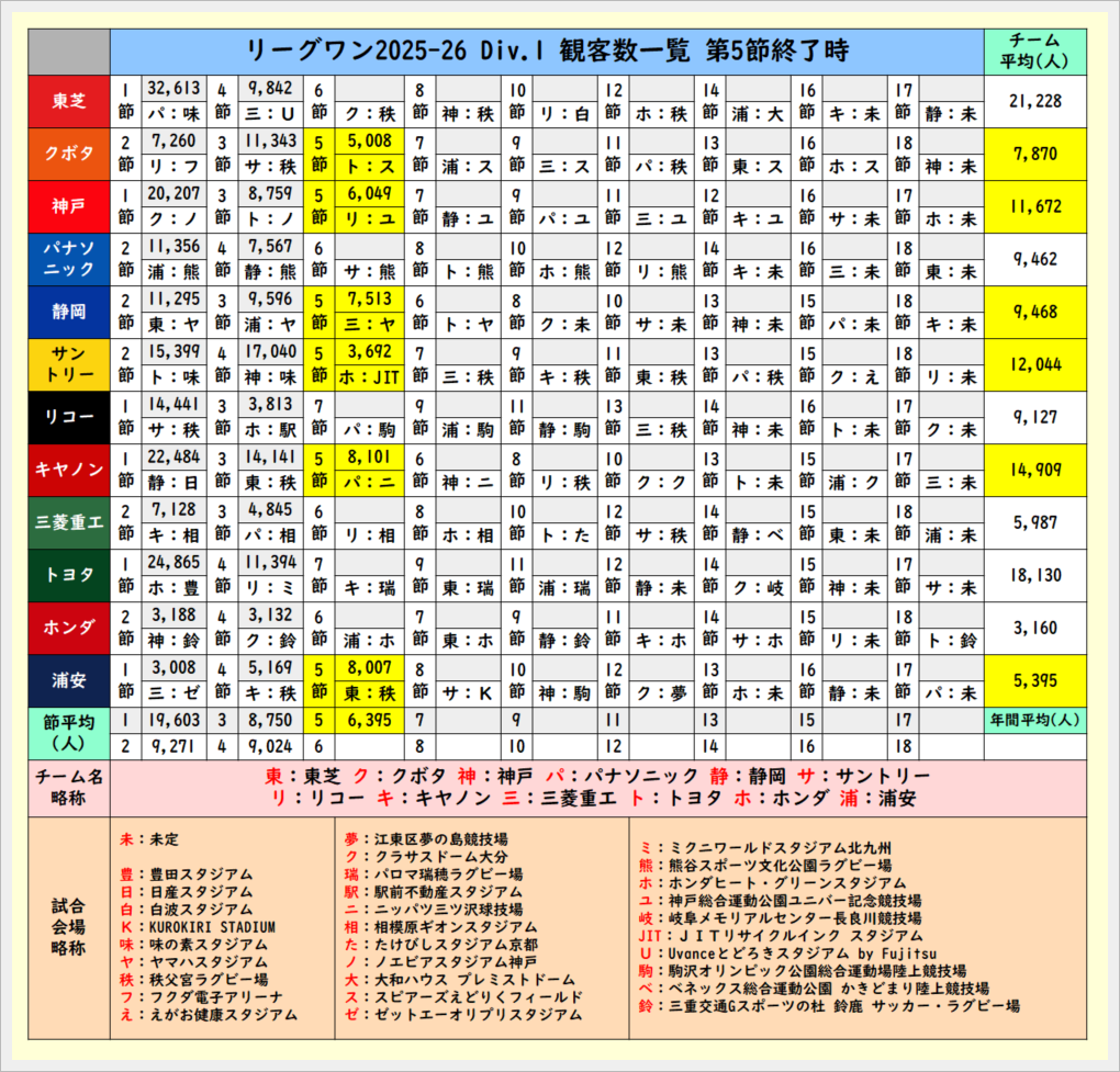 第5節終了時観客数一覧