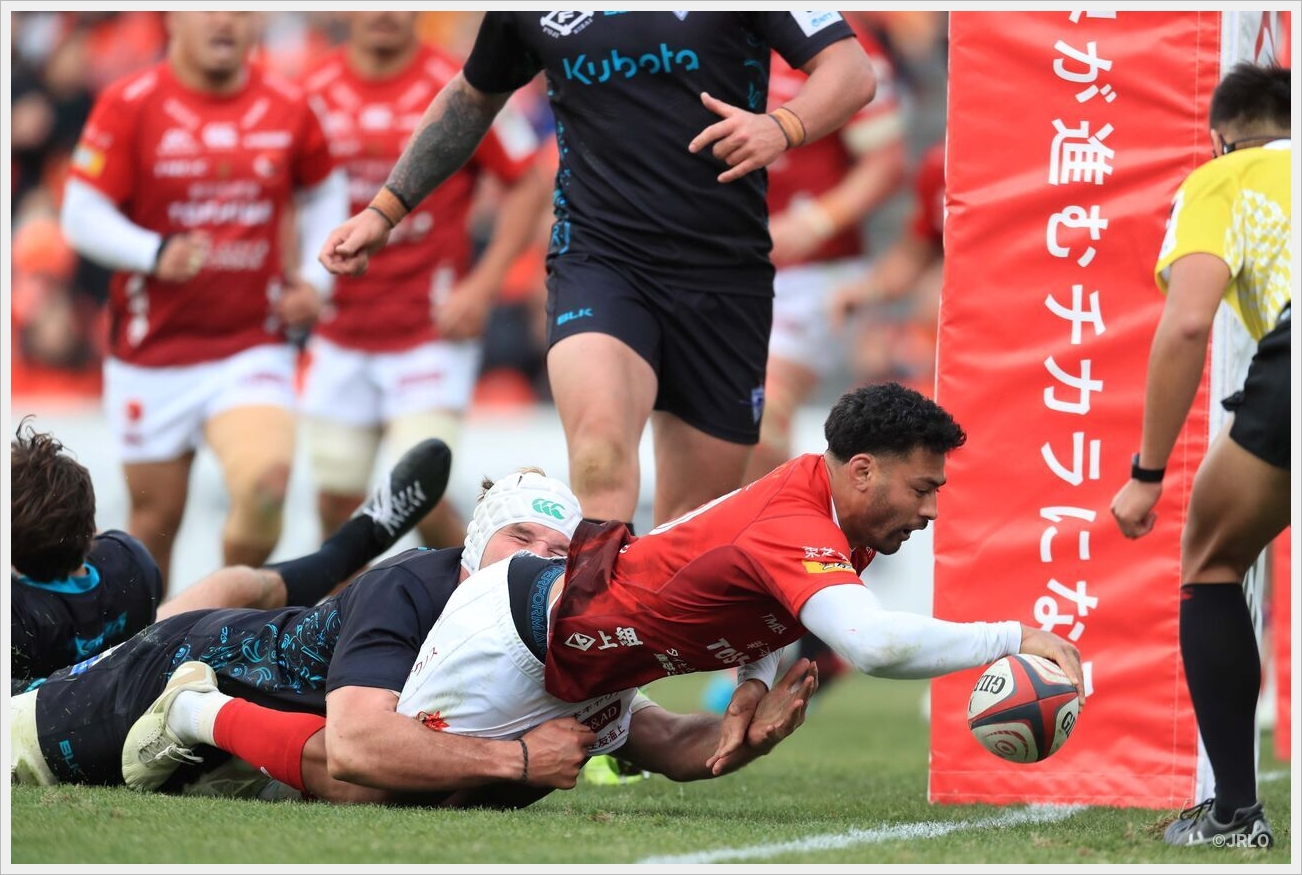 クボタもさほど気になる点は無かった。ただこれまでの数試合とは違い、風下の影響もあったのか、自陣から出られない時間帯が続き、前半に大きなアドバンテージを得ることが出来ず、逆にリードされて前半を折り返した。いくら強いチームでもペナルティが重なるとリズムは作れずに劣勢になる。これは次戦以降の課題だろう。アタックも両WTB木田、根塚の不在は少し影響したかもしれない。
