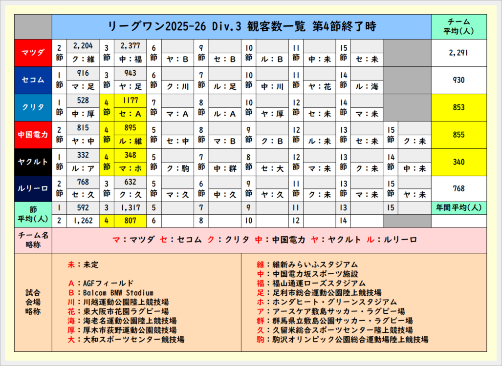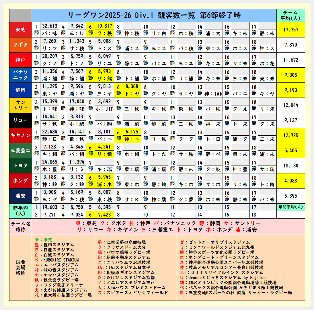 第6節終了時観客数一覧