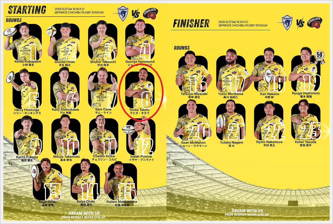 ・CTBプニヴァイ:中野不在による一時的なインサイドCTBかは不明だが、キャリーもディフェンスもキックも良いプニヴァイの12番は楽しみ。そのラグビーIQの高さでSO髙本の負担を減らして欲しいです。