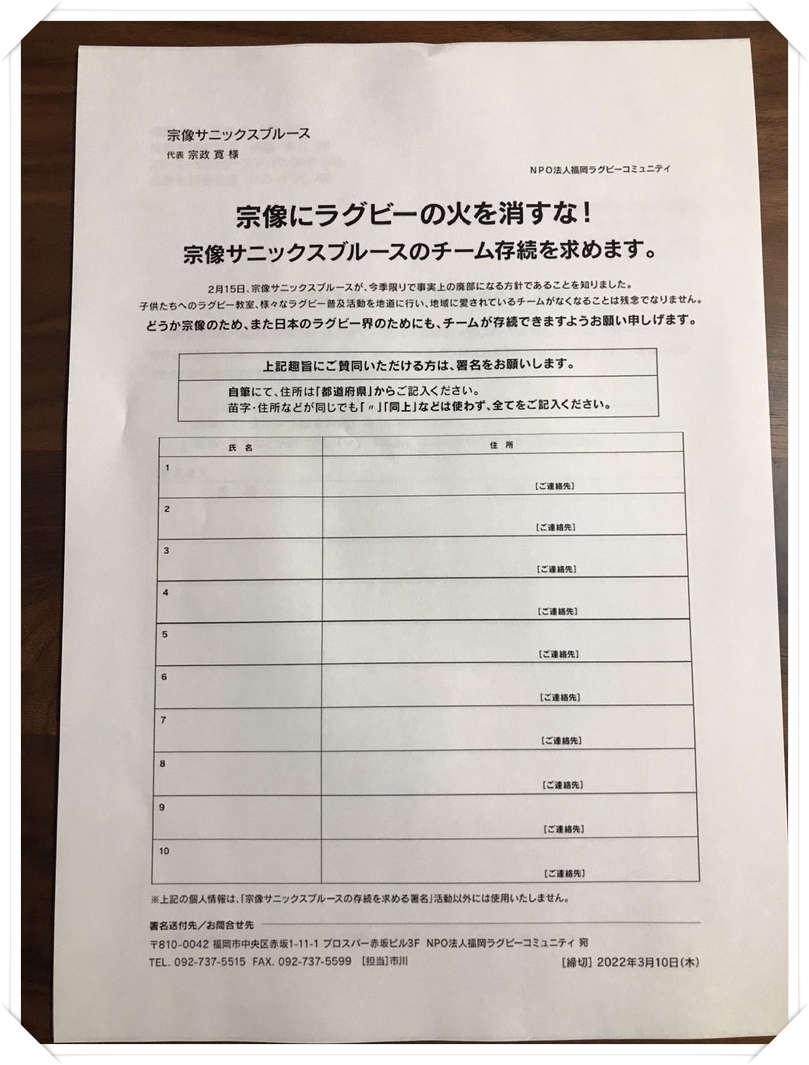 宗像サニックスブルースの存続署名活動に参加してきました。