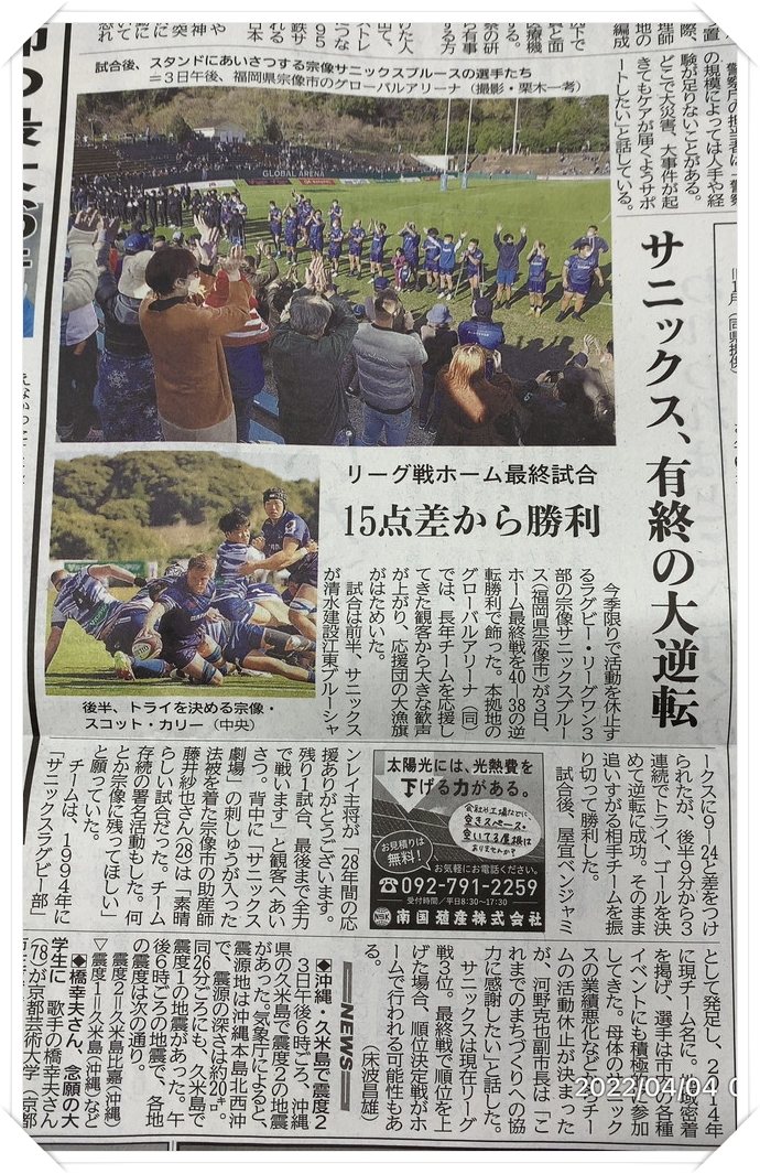 宗像サニックスブルースに感謝を伝える事が出来ていれば最高!!