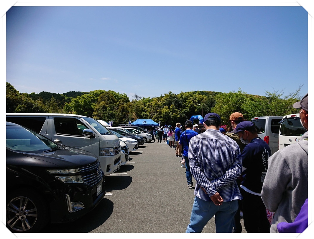 ユニフォームもらうために並んでます!すごい並んでる