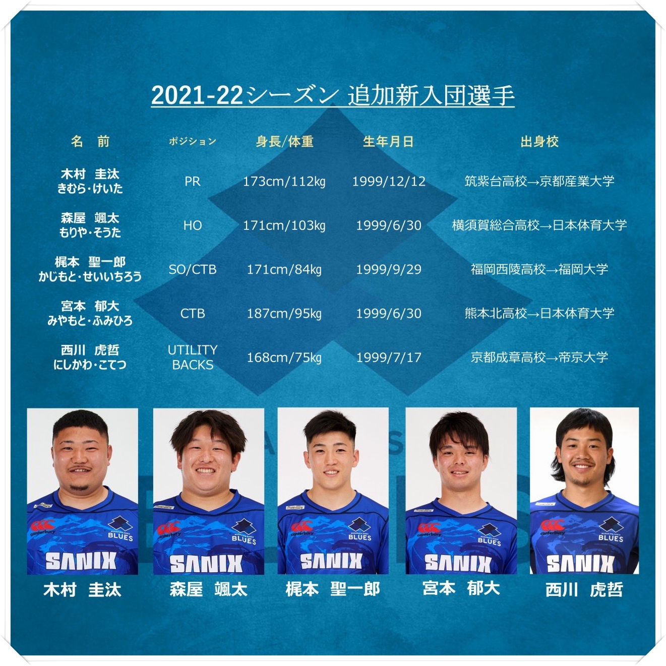 入団を決めた時と環境が変わり、気持ちは複雑だと思いますが、少ない時間でも宗像サニックスブルースでの貴重な時間を次のステップに繋げてください。