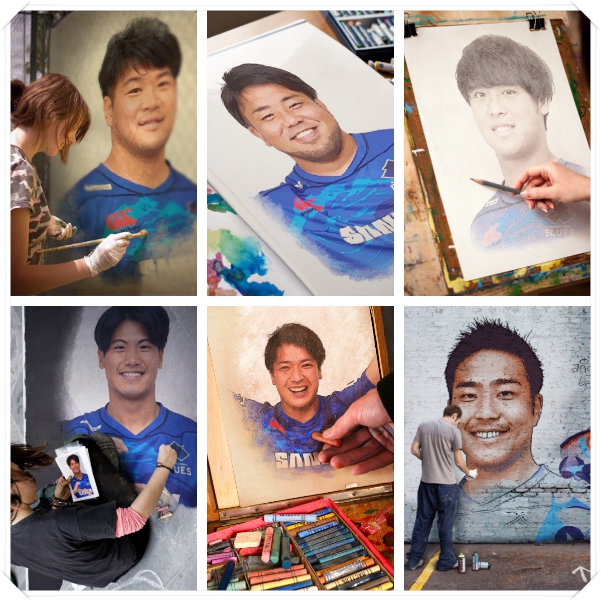 画家の友人達に頼んでブルースの選手達を描いてもらいました
