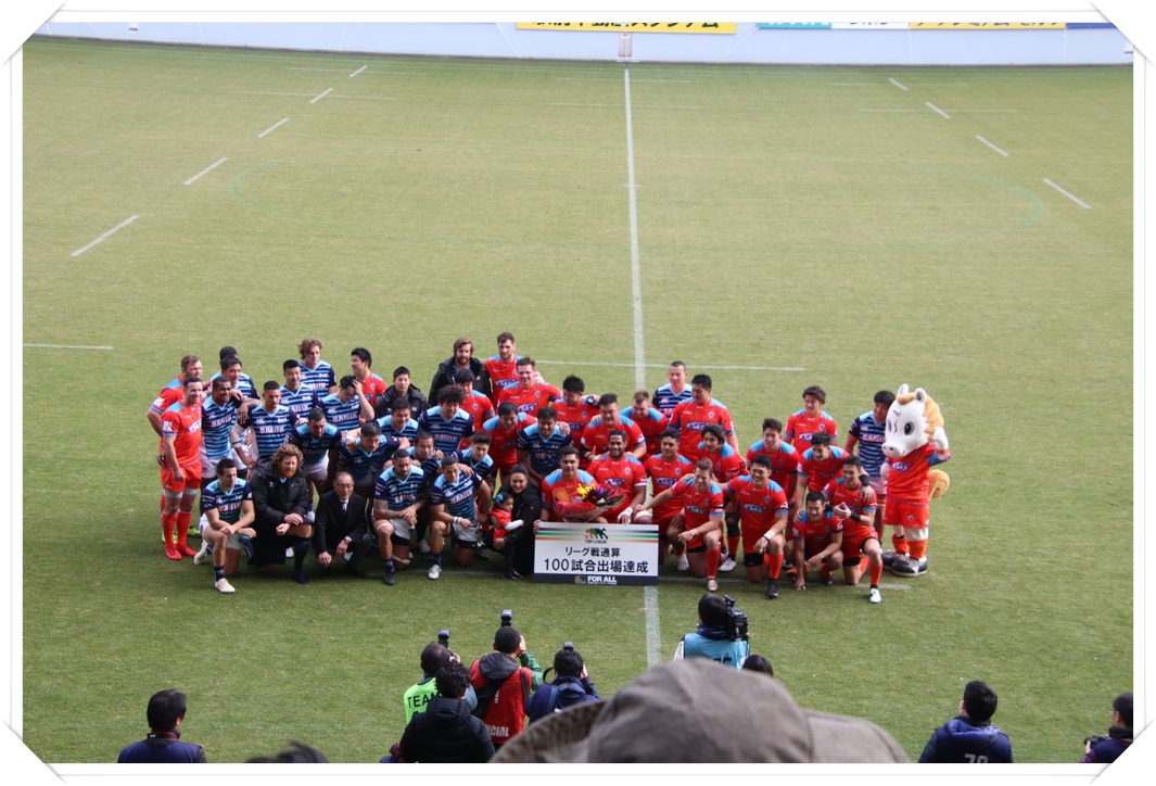 ちなみにバツベイ選手がトップリーグ100試合出場でした。
