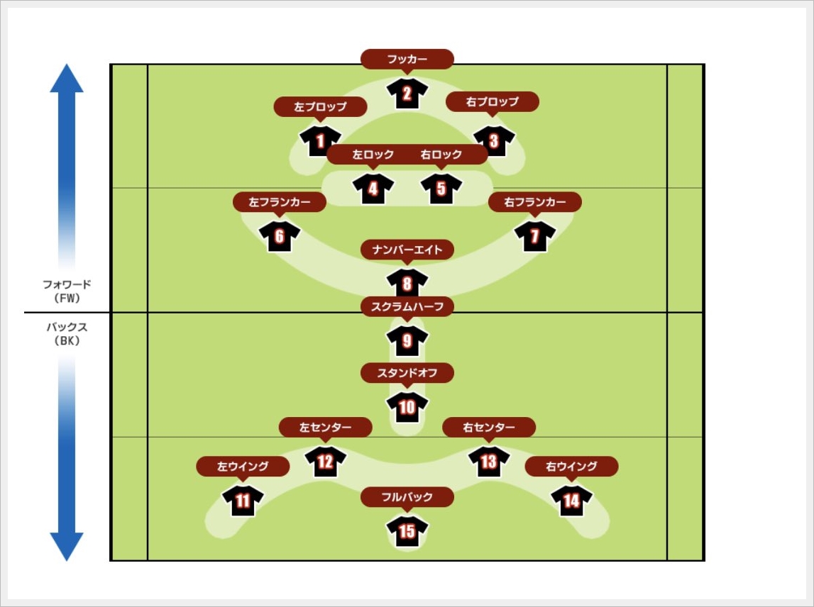 前から8番目という意味で名付けられています。以前は6番、7番、8番をまとめて「バックロー」と呼び、その真ん中は「バックローセンター」と呼ばれていました。もともと7番と8番の背番号は逆だったのですが、それを現在のように改めた際に「ナンバーエイト」という呼び名になりました。