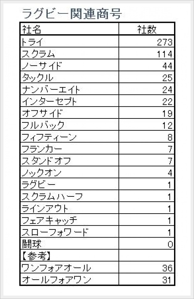 2019年、帝国データバンクがラグビー関連ワードを冠する企業名をリサーチしました。