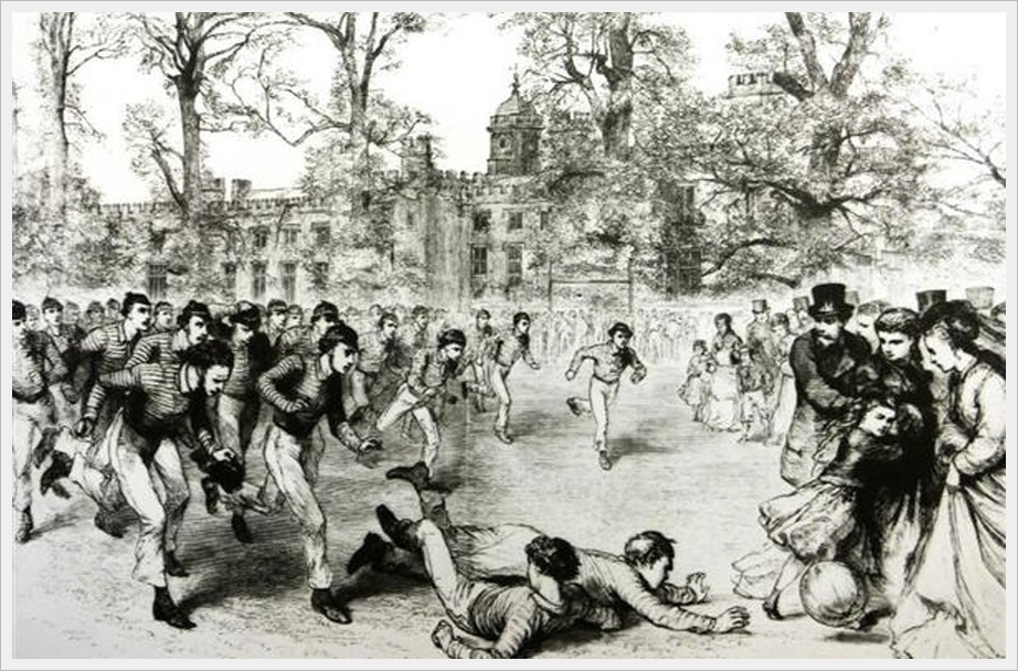 ラグビーがフットボールの一種だった当時、ラインを引く機材もなければ、ラインという概念もなかったので、選手たちを取り囲んでいる観客たちが境界線でした。