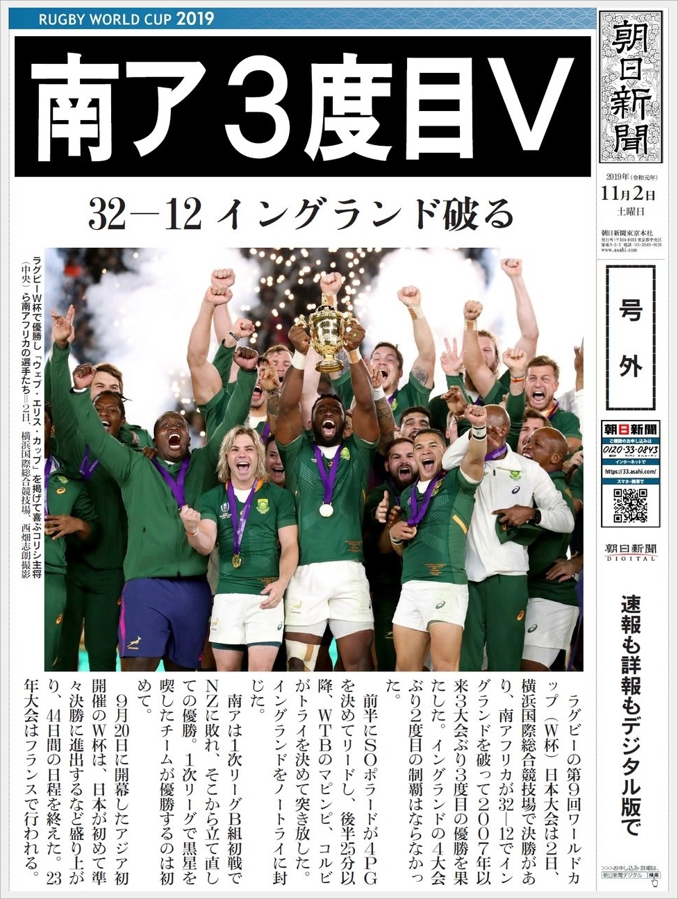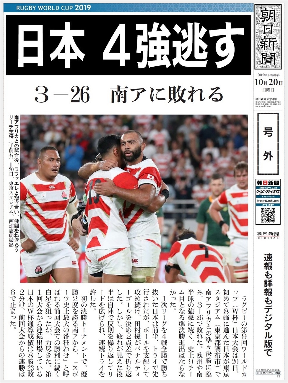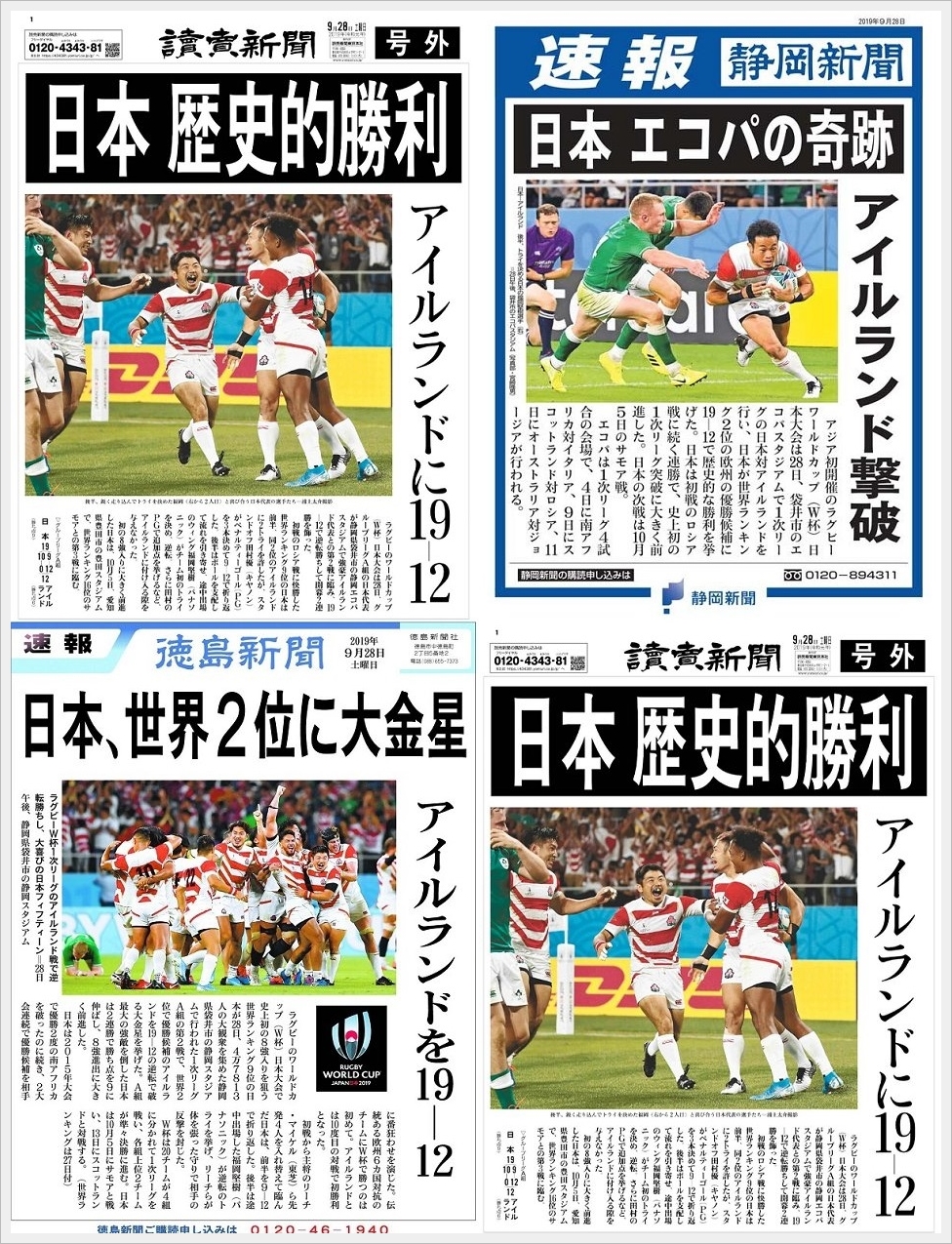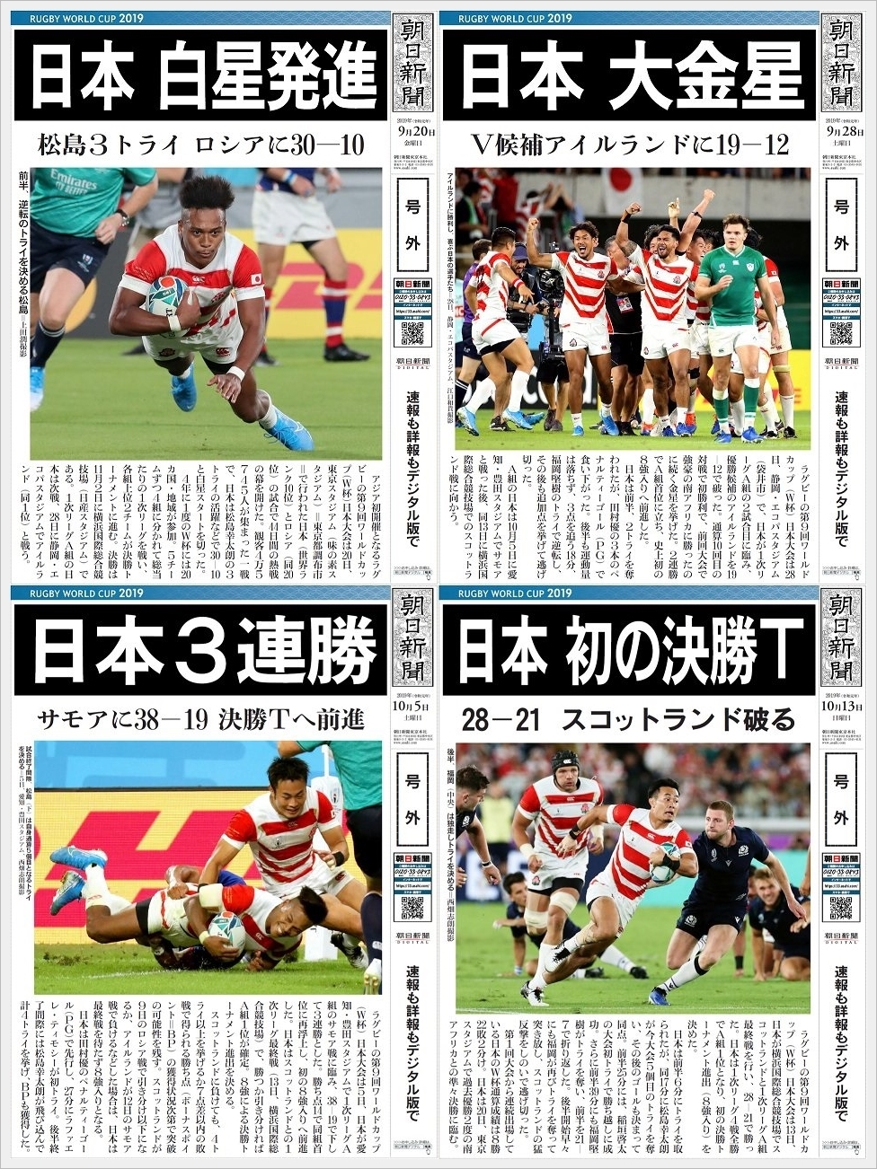 2019W杯期間中、日本の試合が終わる度に号外が配られてました。