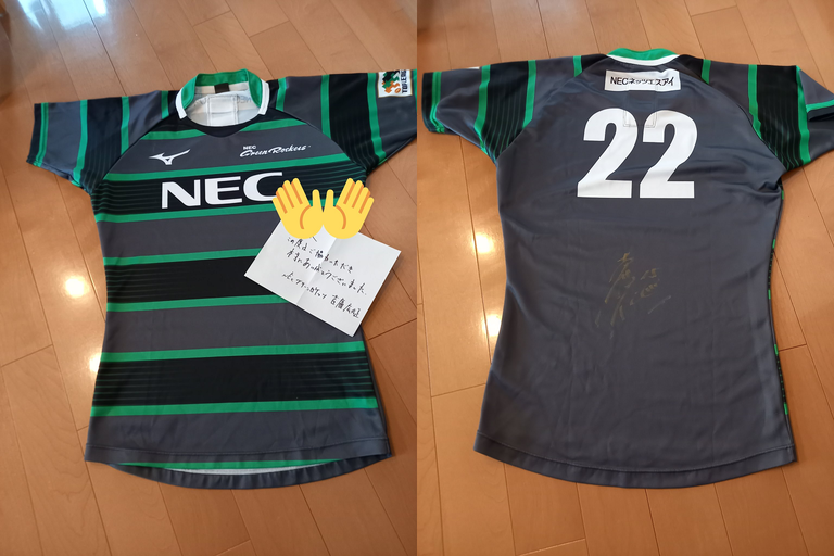 初めてラグビー関連で当たったのと、ラストトップリーグの思い出にもなった宝物です