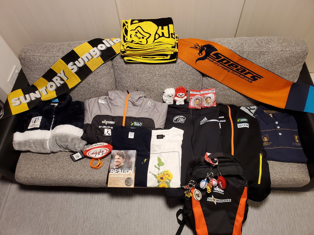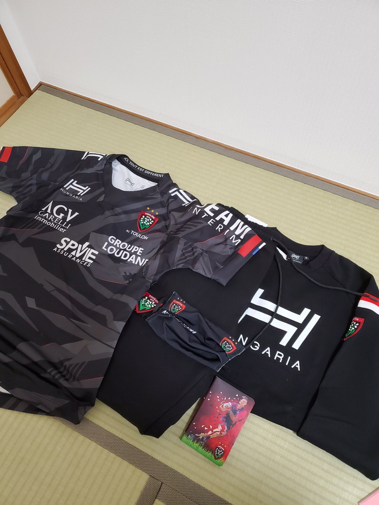 こんな感じでRCトゥーロン(五郎丸が2016-17に1シーズンだけ在籍したチーム)のグッズが順調に増えております