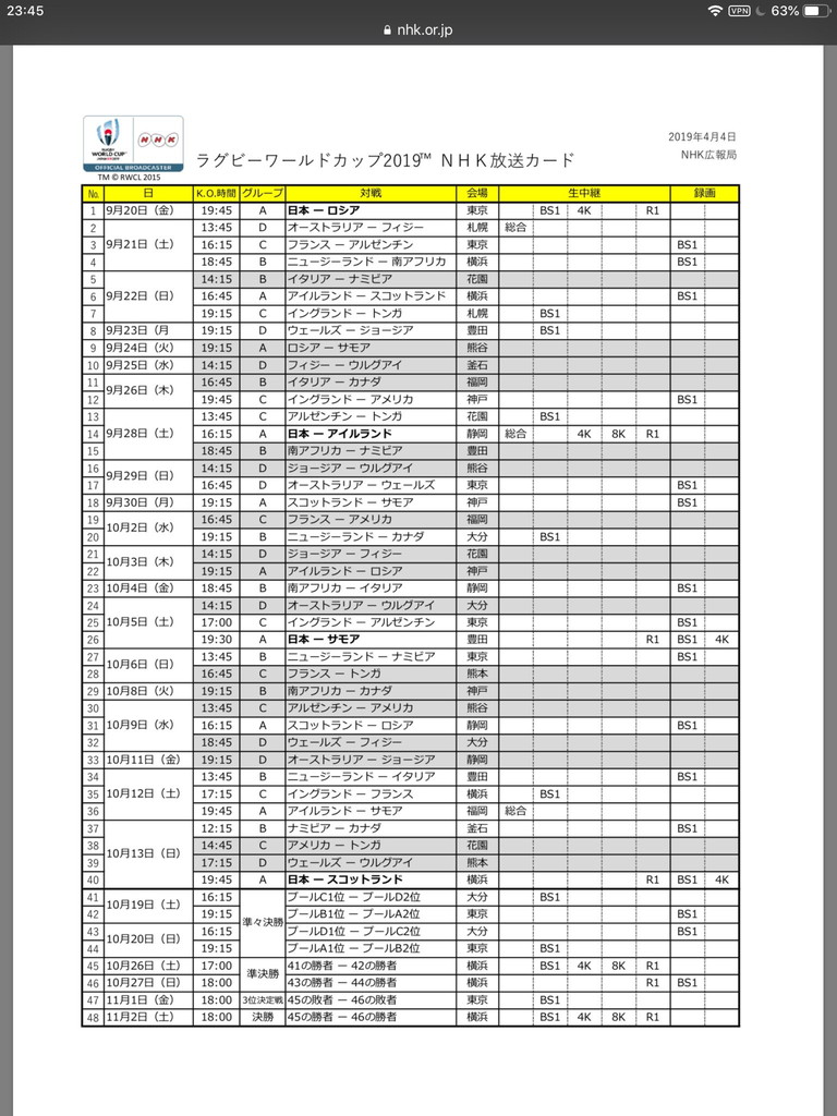 全48試合のスケジュールが1枚に纏まってて、チケット争奪の時、大会中、大会後、何度眺めたか…(お陰でほぼ暗記した)