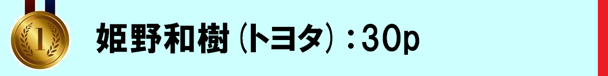 | 秋山大地(トヨタ) | 0 | 2 | 0 | 4 |