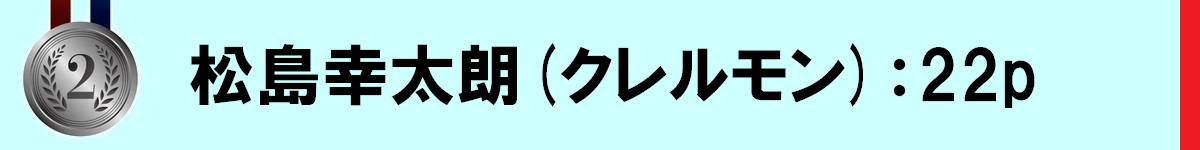 | 中嶋大希(神戸) | 0 | 1 | 0 | 2 |