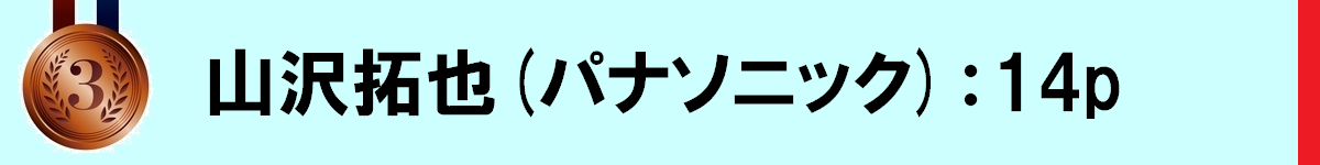 | 山沢京平(パナ) | 1 | 1 | 0 | 5 |