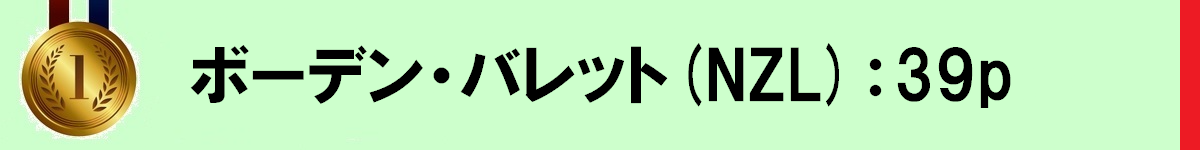 | ボーデン・バレット(NZL) | 10 | 4 | 1 | 39 |