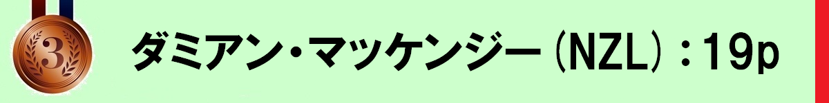 | ウィル・ジョーダン(NZL) | 0 | 1 | 1 | 3 |