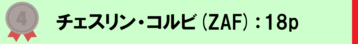 | チェスリン・コルビ(ZAF) | 5 | 1 | 1 | 18 |