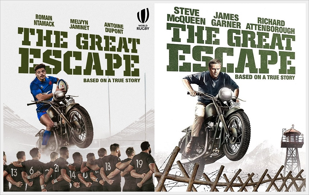 映画好きな方は分かると思うけど、これは1963年に公開されたスティーブ・マックイーン主演の映画「大脱走」のオマージュ。「大脱走」は、第2次世界大戦下のドイツ北部の捕虜収容所に入れられた連合軍兵士たち総勢250名の集団脱走計画を描いた作品。つまり大ピンチからの大脱走というわけね。ふふふ。