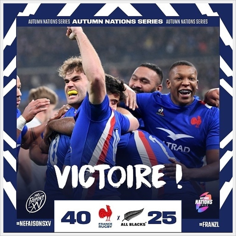 ちなみに、フランスがオールブラックス相手に勝ったのは、2009年6月にニュージーランドのダニーデンで勝って以来12年ぶりのことらしい。フランス国内での勝利はなんと2000年11月にマルセイユで勝って以来だって。そりゃ嬉しいよね。