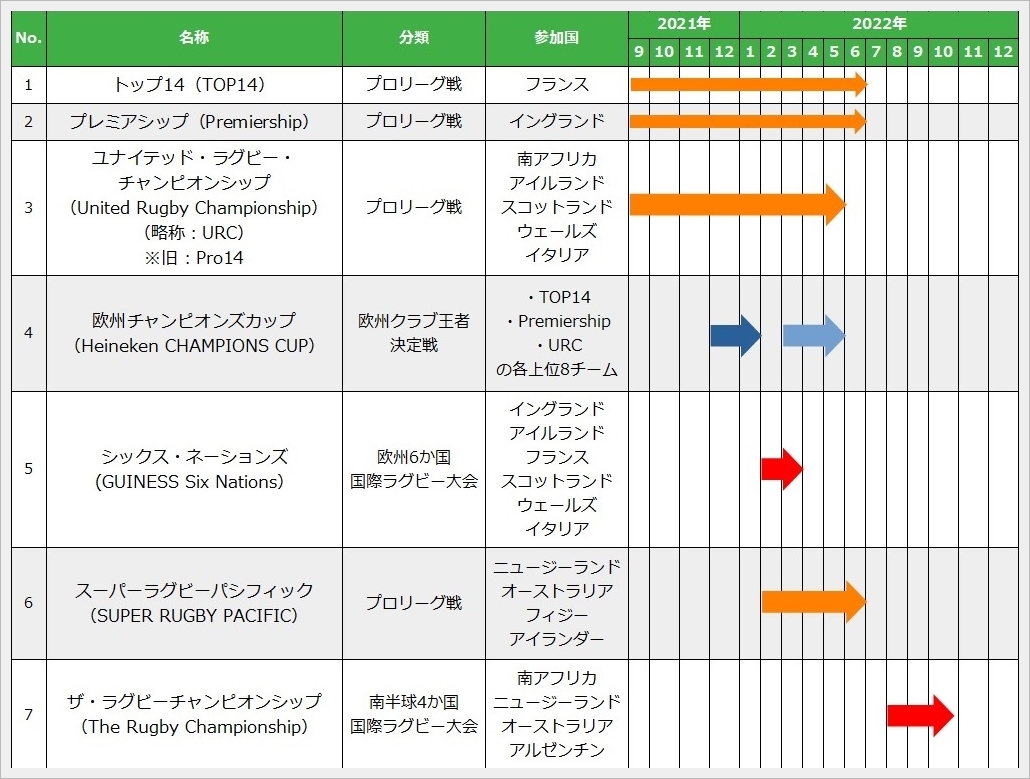 主な海外リーグや大会のスケジュールはこんな感じです。