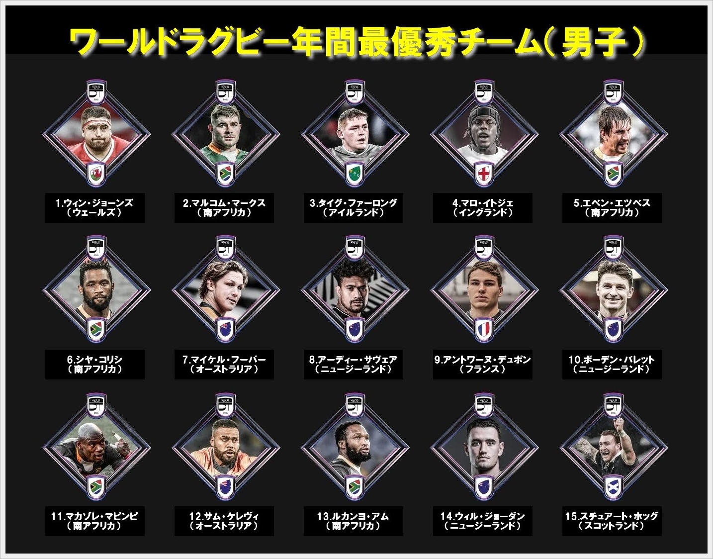 先日発表になりましたワールドラグビー年間最優秀チームですが、公式アカウントの発表が個人的に見づらかったので作り直しました。
