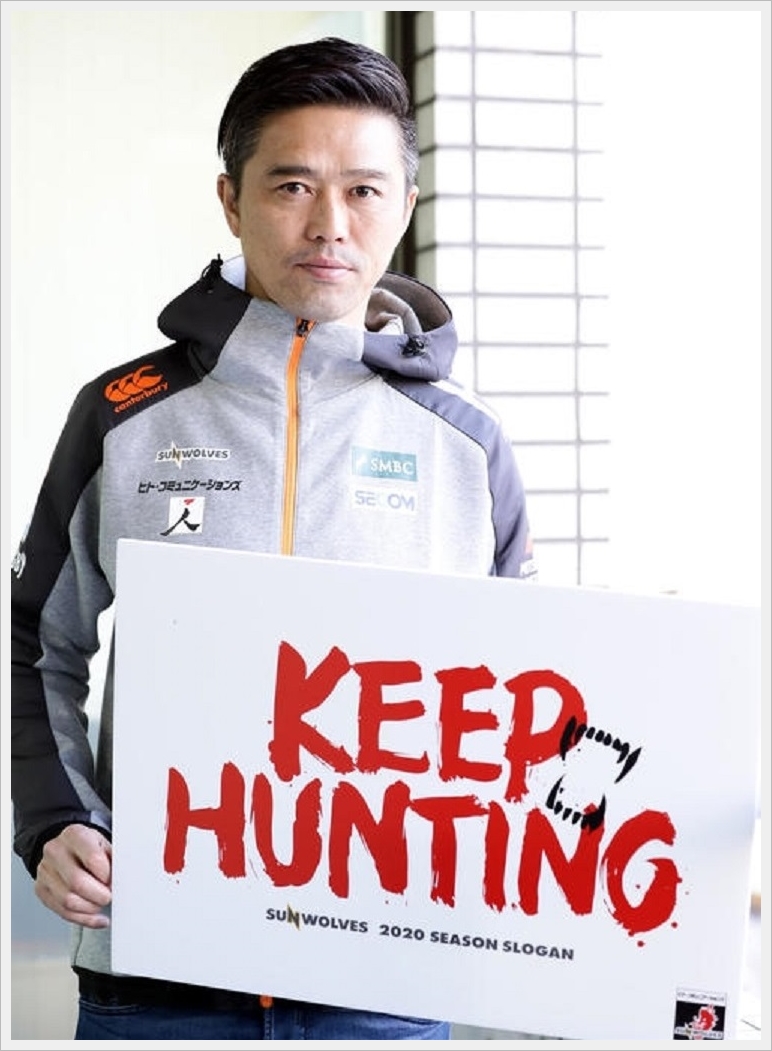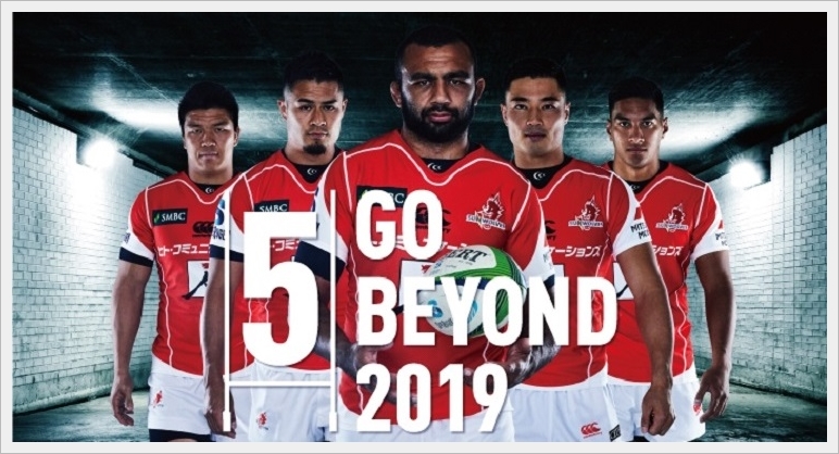 写真の「5 | GO BEYOND 2019」はサンウルブズの運営組織であるジャパンエスアール(2022年1月末で解散)が掲げたスローガンで、意味は「サンウルブズを5年以内に SR で優勝できるチームとすること」