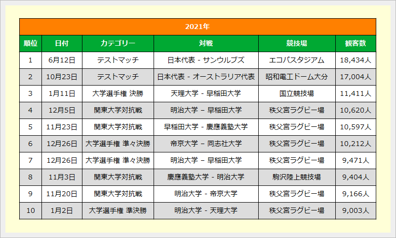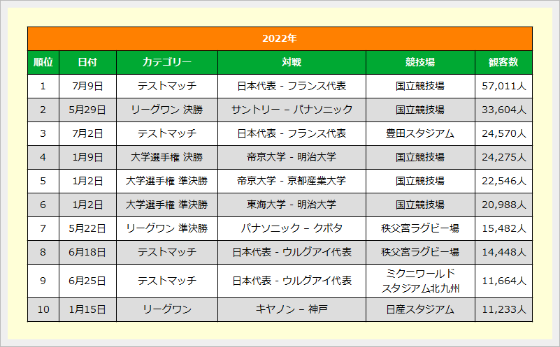 2022年シーズンの観客動員数TOP10をまとめてみましたので、ご参考まで