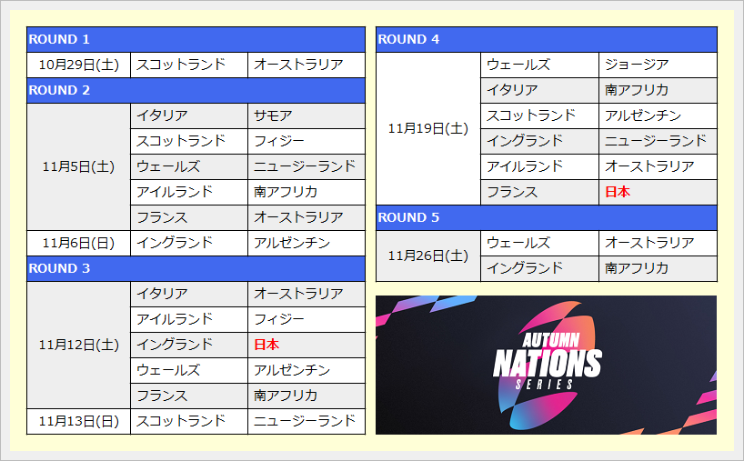 ・AUTUMN NATIONS = 北半球 vs 南半球