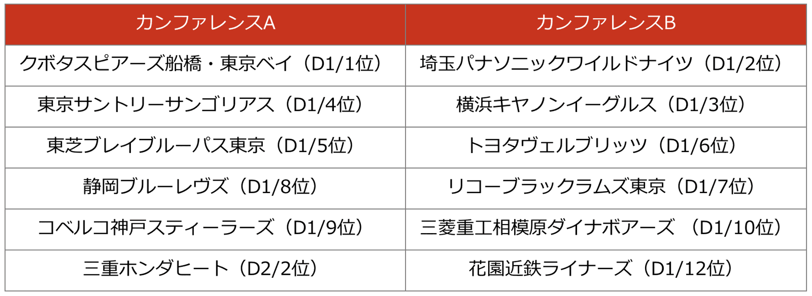 例えば今季のカンファレンスBには、結果的にDiv.1全体で失点がワースト1位と2位だったNECと近鉄が存在した。これにより、カンファレンスBのチームの方がカンファレンスAのチームより勝ち点(特にボーナスポイント)が獲りやすい状況が発生した。