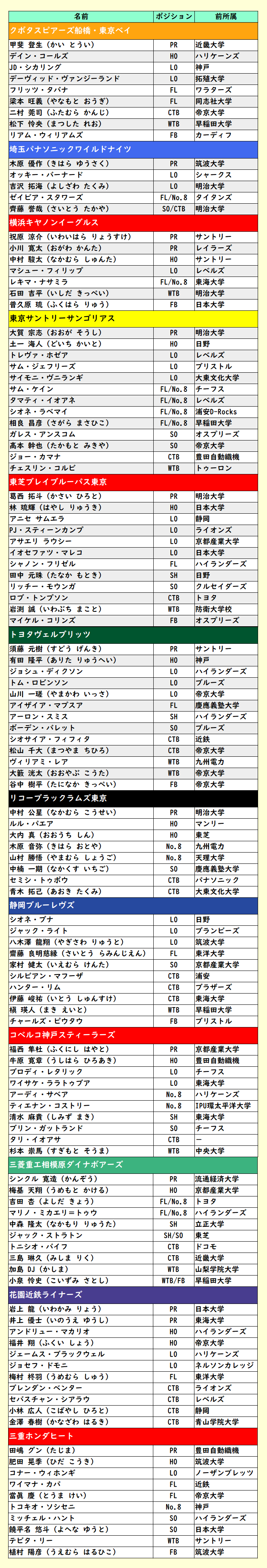 なお、前季にアーリーエントリーで出場した選手もいますが、便宜上今季新加入選手としてます