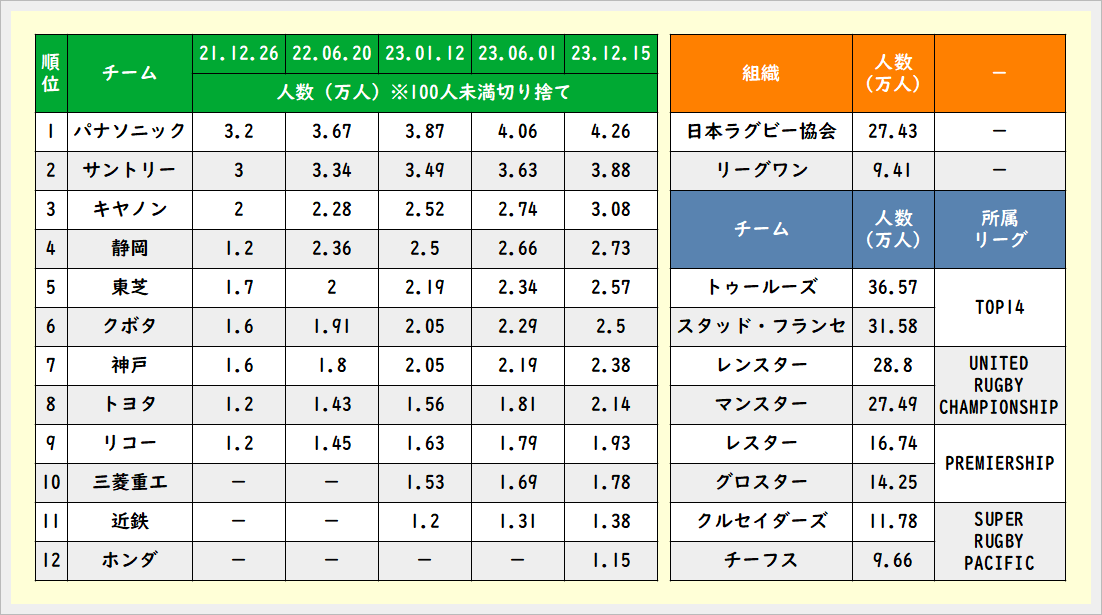 Div.1各チームのTwitterフォロワー数を調べてみました