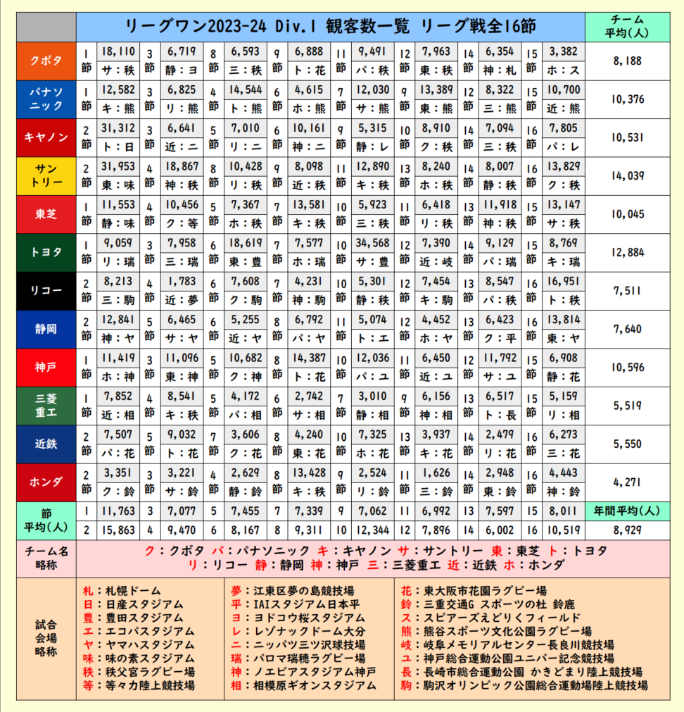 514 リーグワン2023-24 Div.1/Div.3 リーグ戦観客数一覧