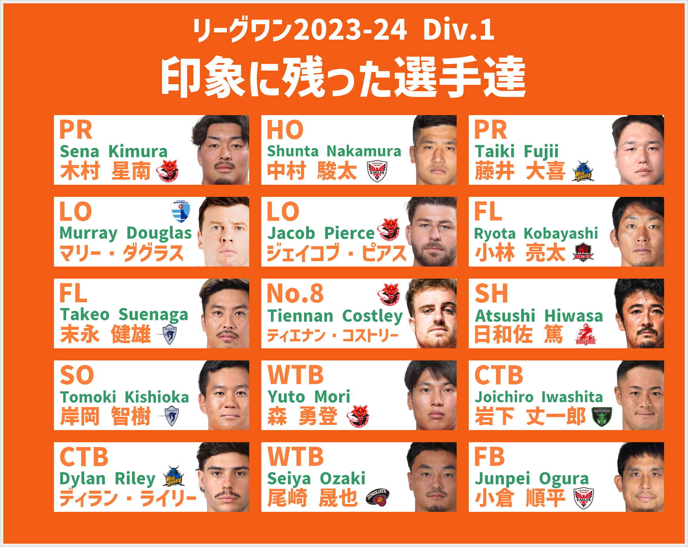 517 リーグワン2023-24 Div.1 印象に残った選手達
