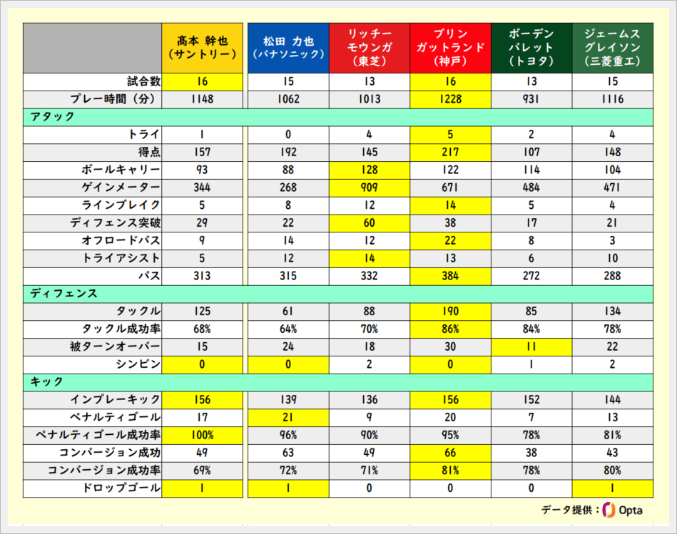 主なSOとのスタッツ比較です