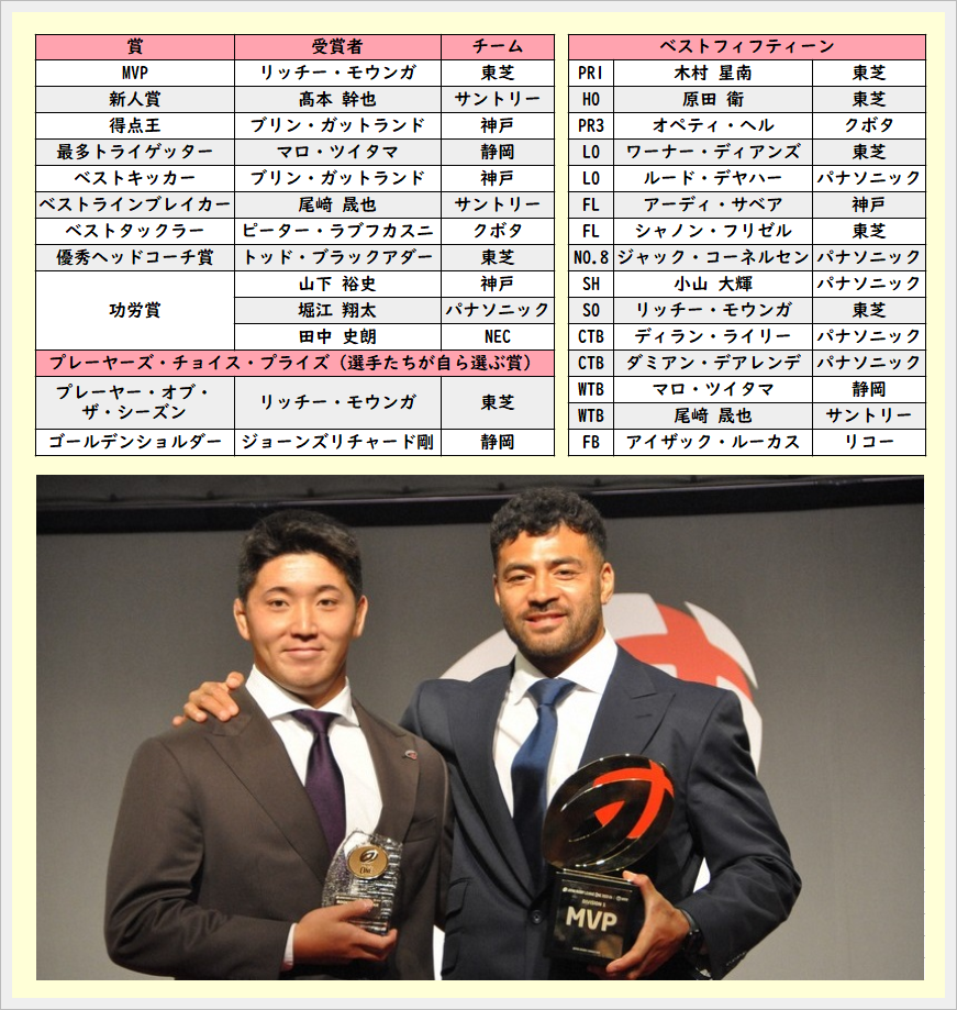524 リーグワンアワード2023-24 Div.1 個人表彰受賞者一覧
