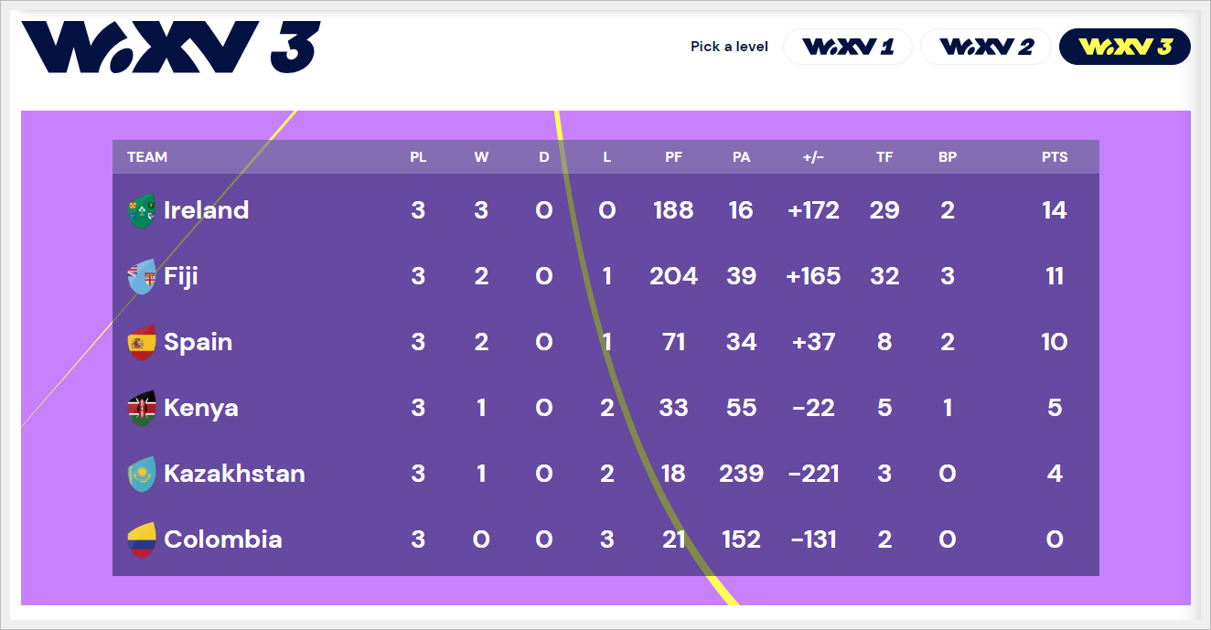 | アイルランド 64 - 3 コロンビア |