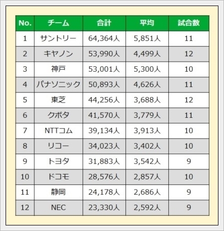 気になったので、第13節までのチーム毎の観客数を調べてみた