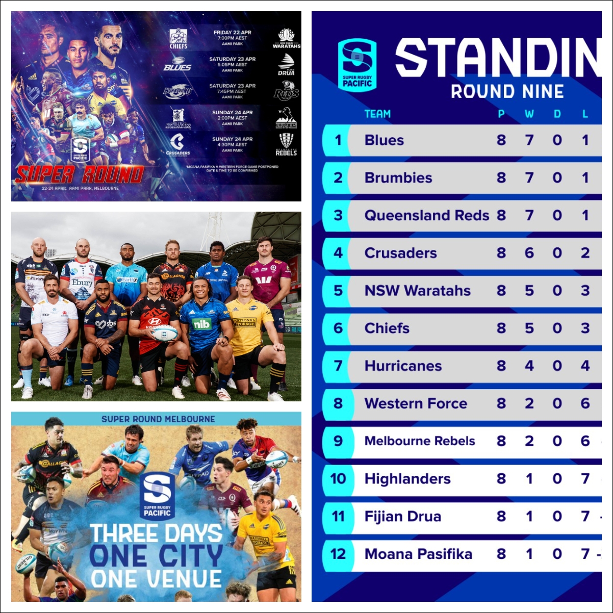 意地悪ウィルスのせいでニュージーランドとオーストラリアに分かれていた Super Rugby Pacific ですが第10節はオーストラリアのメルボルンに集結して試合します(画像①②)