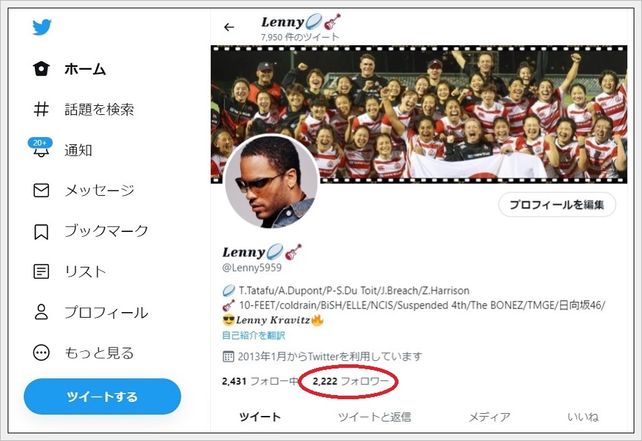 朝起きたらフォロワー数が「2,222」になってました