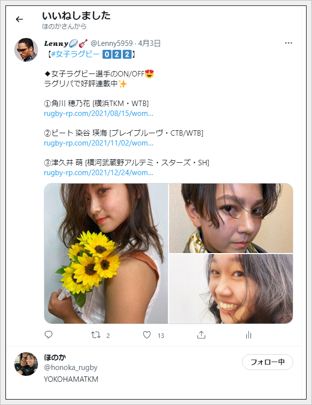 相良選手のこととか早稲田ラグビーのことは特に呟いてなかったので驚いた