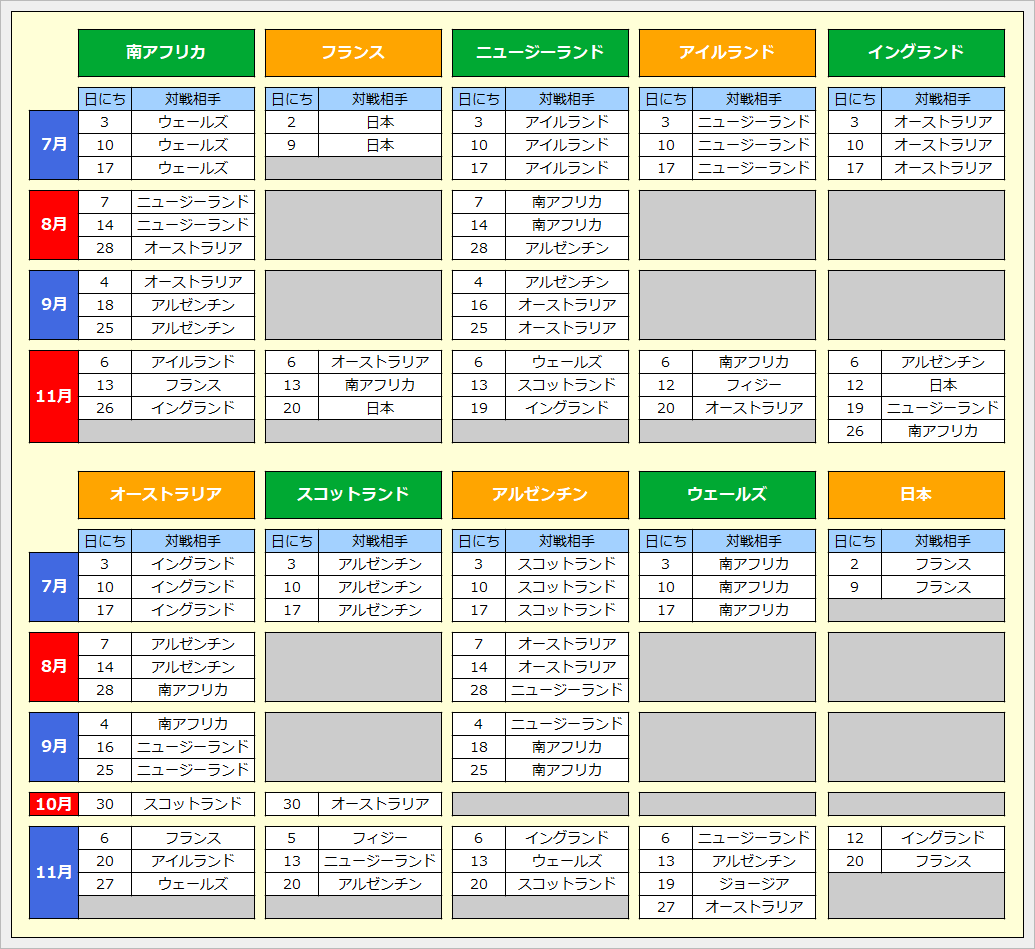 10月は女子RWCがあるので男子は組まれません(月末以外)