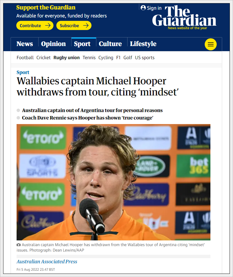 「国を代表するにふさわしい精神状態ではないため、ラグビーチャンピオンシップを辞退した」