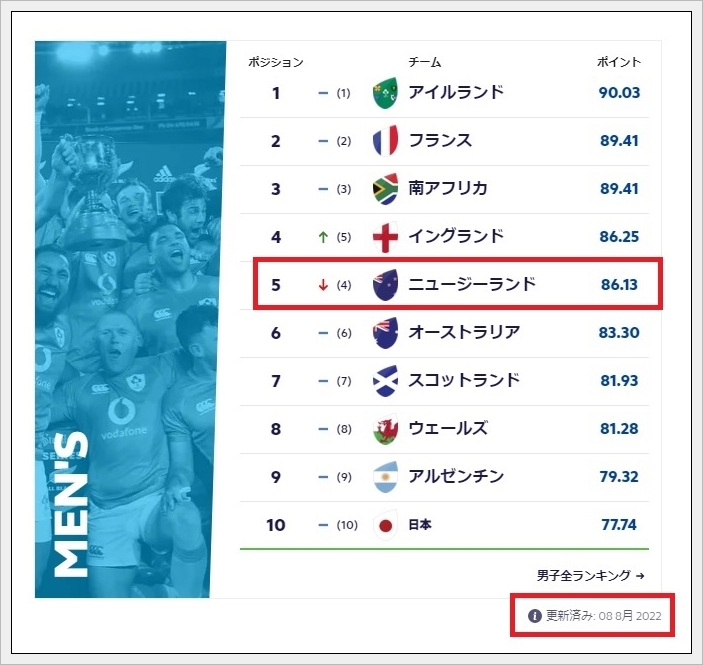 1.5倍になっちゃいましたからね。オールブラックスはランキング5位になっちゃうとのことです。