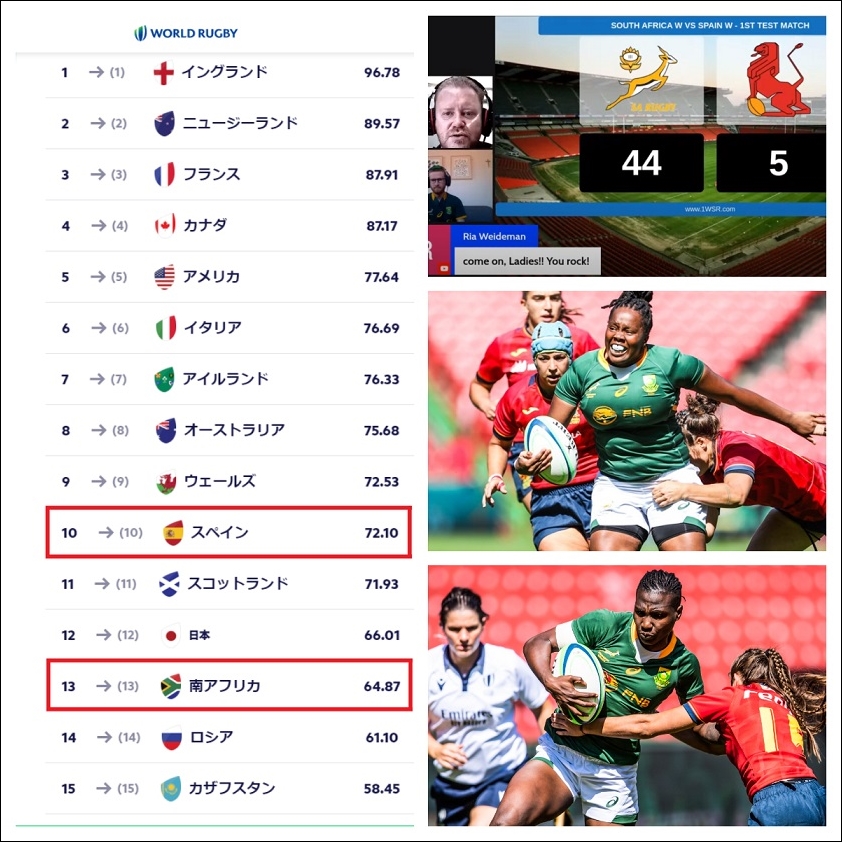 サクラ15と1勝1敗だった南アフリカが格上のスペインに圧勝しました